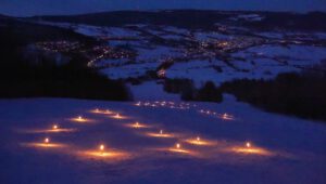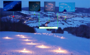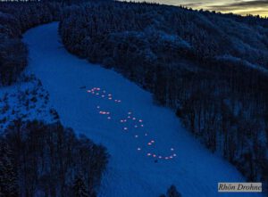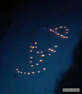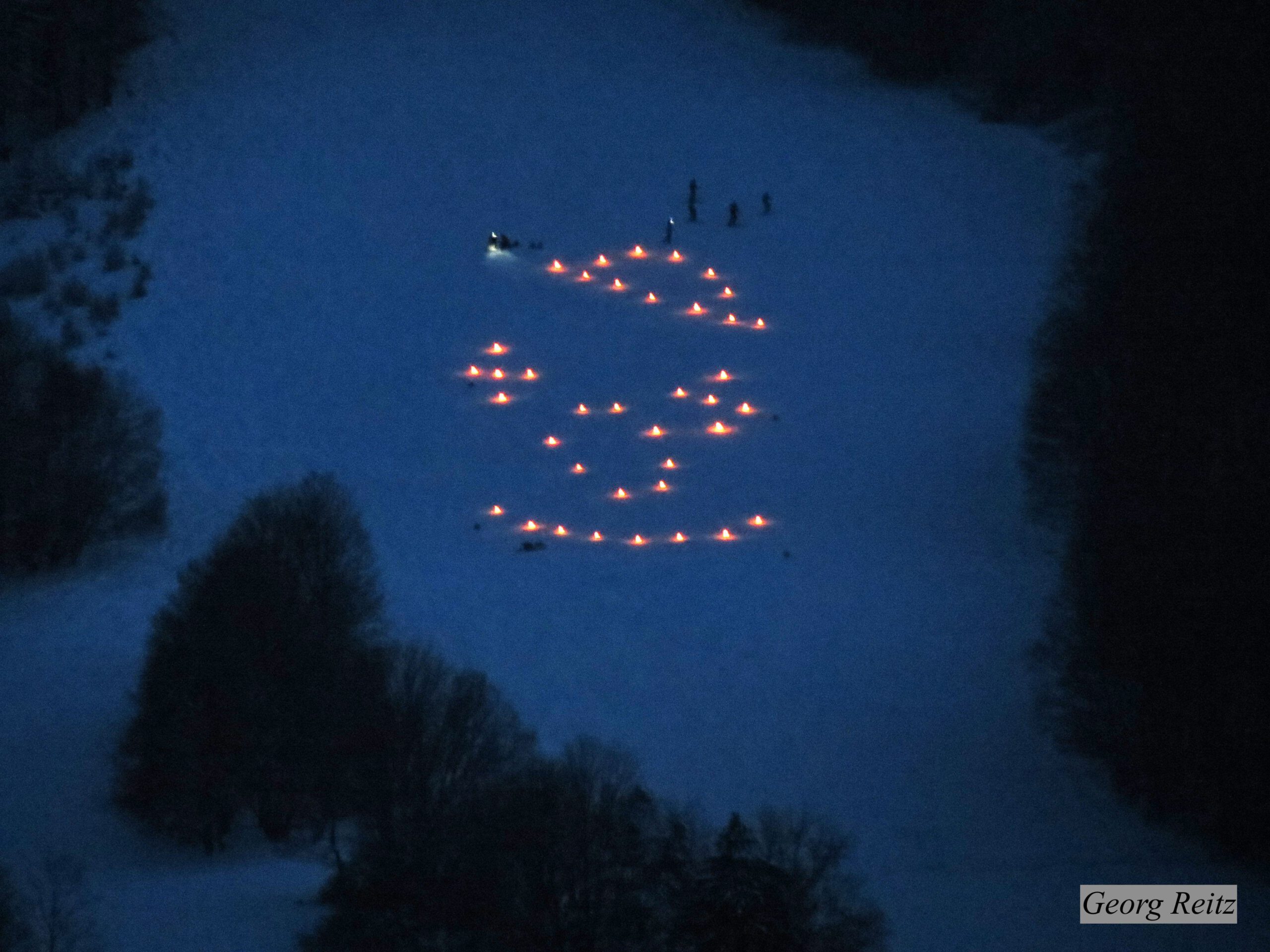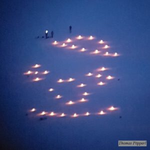 Ein Bild zeigt auch die Lampen, die uns aus dem Tal „Applaus gespendet haben“. Vielen Dank, das motiviert uns! Danke, dass keine Laserpointer im Einsatz waren. Ein Tipp: Eine dunkle Umgebung hinter euren Lampen lässt uns diese am besten erkennen!