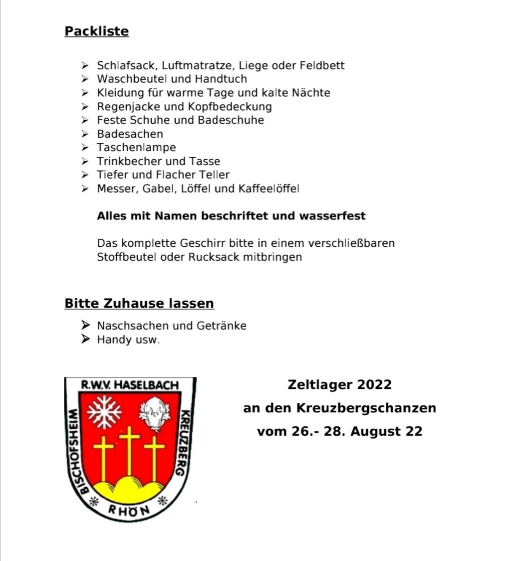 26.08. – 28.08.2022: Zeltlager an den Kreuzbergschanzen